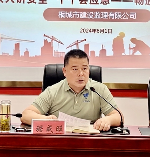随后,市监理公司总经理琚成旺就如何抓好安全生产工作重点强调以下四点:一是认真研判当前安全生产形势,强化落实安全生产责任;二是全力抓好安全培训和隐患排查工作,聚焦目标,突出重点;三是加大企业安全的投入,提升企业安全的管理水平,抓好企业的安全生产。四是抓好全体员工的安全宣传工作,全面提升全体员工主动参与安全管理的意识。