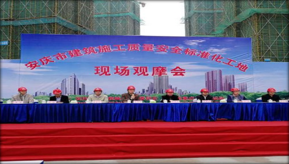 这次观摩会由安庆市住建委主办,建设单位安庆市重点工程局,施工单位中恒建设集团有限公司等联合承办,参会的建设领域相关人员达300余人。安徽省建设工程质量安全监督总站站长程德旺,安庆市住房城乡建设委副主任黄金竹,安庆市重点工程局等相关政府部门领导出席观摩会并发表讲话,建设单位市重点局,施工单位中恒建设集团作经验交流发言。