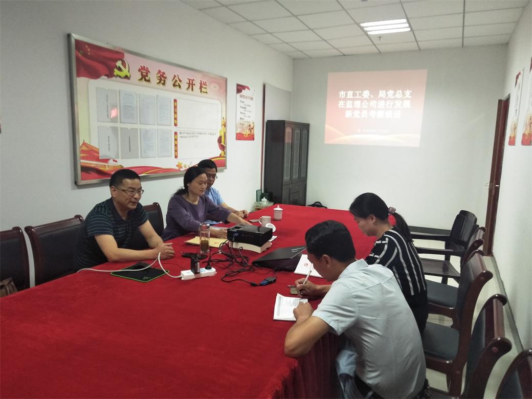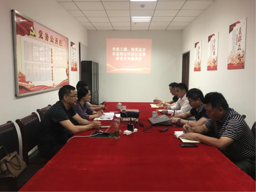 为认真做好党员发展工作,确保党员发展质量,5月29日下午,市直工委、局党总支一行对公司两名新发展的党员进行了考察谈话。